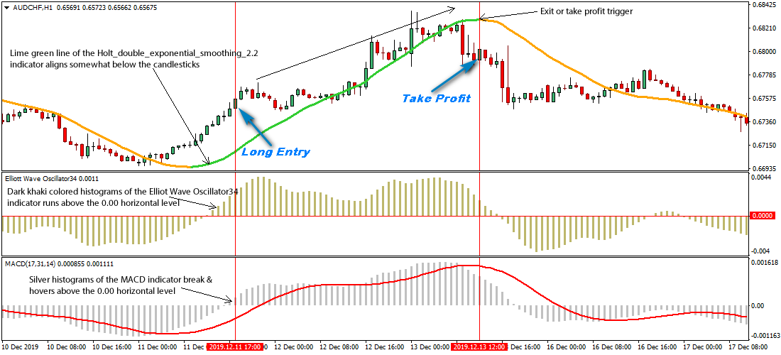 The AUD/CHF 1-Hour Forex swing trading strategy works great on the H1 trading charts and above.
