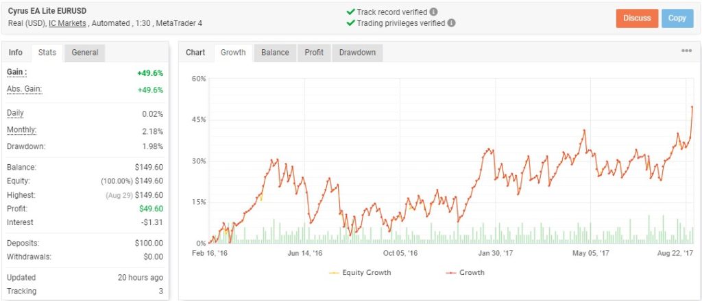 The track record below shows how well the Cyrus V3.1 EA robot has performed in the past on the EUR/USD. (click on the picture for full size view).